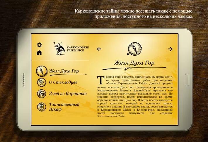 Крконошские тайны перенесут Вас в мистический мир. Вы встретитесь лицом к лицу с Духом гор и познакомитесь с легендами и историями, рожденными крконошской землей. Вы повстречаете необычного лаборанта, стеклодува, валлонов и жуткую Мандрагору. Мультимедийный и интерактивный характер подземного царства позволяет поучаствовать в жизни древних жителей Крконошей. Интенсивность впечатлений усиливает поразительная игра света и звука.